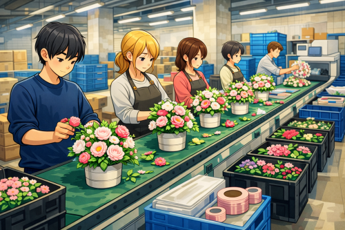 | 業務内容 | 初めての人でも丁寧にお花の扱い方や作業方法を説明します。 経験がなくても可能な作業をお願いしています。 ・お花の仕分けや水揚げ作業 ・ライン作業のお花の供給や検品作業 ・アレンジメントや花束の梱包作業 ・その他、制作準備作業など ※上記いずれかの内容になります。その日によって、多少業務内容が異なりますので、予めご了承ください。 ※重いものを運んだりする業務をお願いする場合もあります。 |